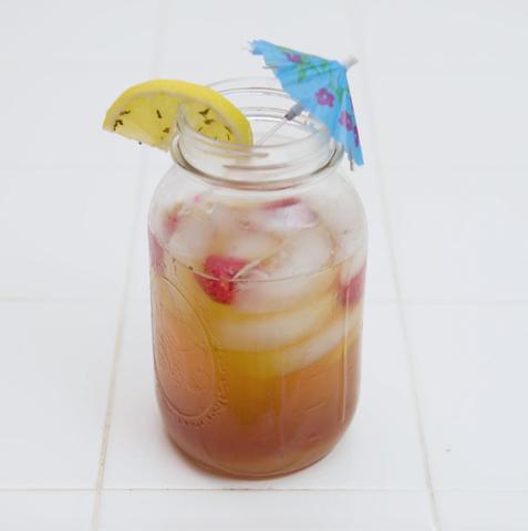 Rosemary, lemon slices and fresh raspberries, for garnish